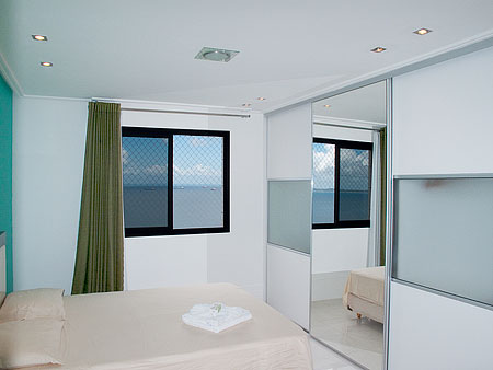 | Total bedrooms: | 3 | | Ensuite bathrooms: | 1 | | Floor: | 18 | | Social bathrooms: | 1 | | Veranda: |  | | View: | Sea view - total | | High-speed Internet: |  | | Wi-Fi: |  | | Max. number of guests: | 5 | | Sleeps comfortably: | 5 | | Double Beds: | 2 | | Single Beds: | 1 | | Sofa Beds: | 1 | | Air conditioning: |  | | Cable TV: |  | | Microwave: |  | | TV: |  | | Washing Machine: |  | | Phone Service: | Only receive calls | | Cleaning Fee: | R$ 80 | | Area: | 116m² (1249 sq.ft.) |